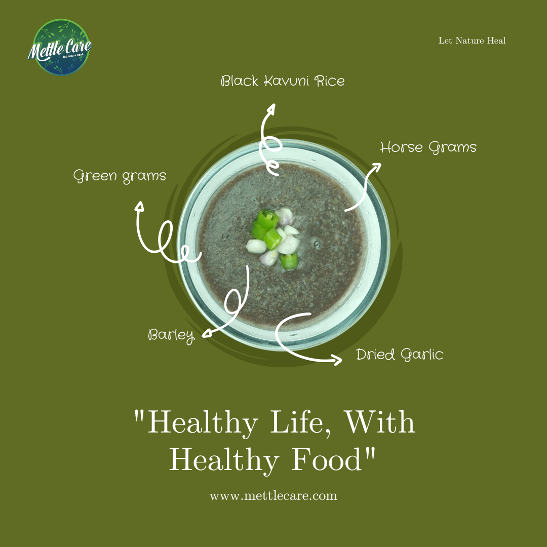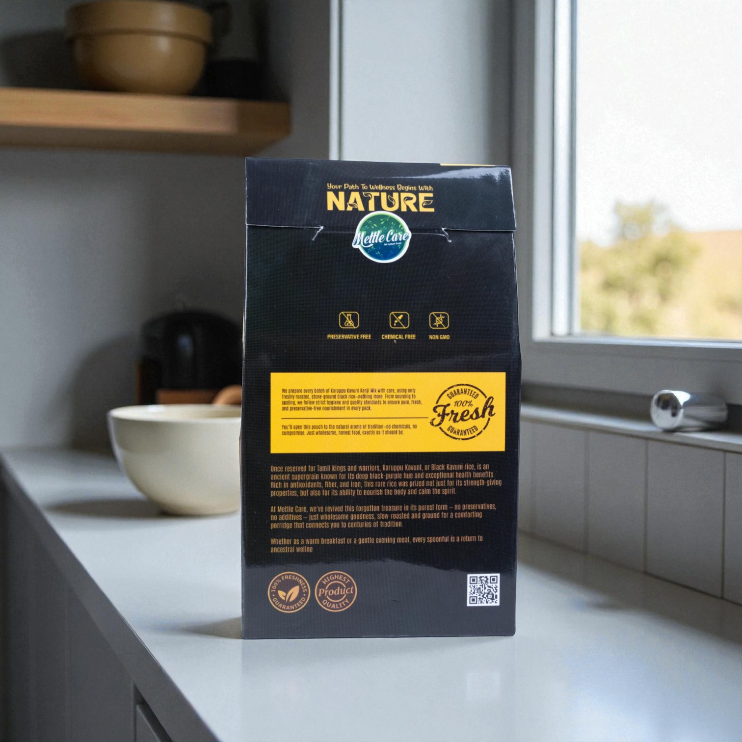 Black Kavuni Rice Mix is a nutrient-rich blend of Black Kavuni rice, barley, horse gram, green gram, dried garlic, black pepper, cumin, and salt, offering a wholesome and flavorful addition to your diet. Packed with essential nutrients, this mix is high in fiber, protein, and antioxidants, making it an excellent choice for promoting overall health. It supports weight management, aids digestion, helps regulate cholesterol and blood sugar levels, and improves heart and skin health. Naturally gluten-free and rich in anthocyanins, this mix enhances immunity and reduces inflammation. Easy to prepare, it can be enjoyed as a nutritious porridge or incorporated into various recipes for a delicious and healthy meal. Perfect for health-conscious individuals, Black Kavuni Rice Mix is a must-have superfood in your kitchen!
